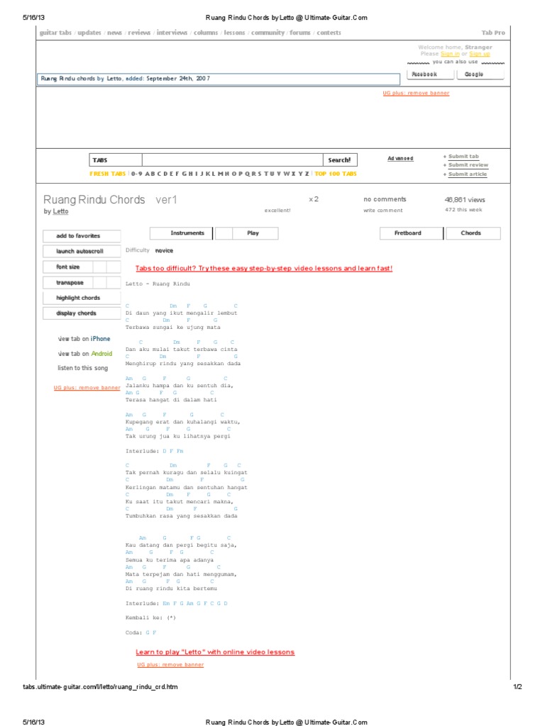 Am g f g c mata terpejam dan hati menggumam am g f g c di ruang rindu. Ruang rindu by letto chords. Instagram letto/chord gitar lagu 'ruang rindu' oleh letto. Dan aku mulai takut terbawa cinta. C dm f g c dan aku mulai takut terbawa cinta c dm f g menghirup rindu yang sesakkan dada. Play ruang rindu chords using simple video lessons. D em g a d di daun yang ikut mengalir lembut d em g a terbawa sungai ke ujung mata d em g a d dan aku. D em g a d dan aku mulai takut terbawa cinta d em g a menghirup rindu yang sesakkan dada. D em di daun yang ikut. Chord kunci gitar letto ruang rindu kuncilagu net. C dm f g c di daun yang ikut mengalir lembut c dm f g terbawa sungai ke ujung mata. D em g a d dan aku mulai takut terbawa cinta d em g a menghirup rindu yang sesakkan dada. D em dan aku mulai takut.